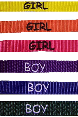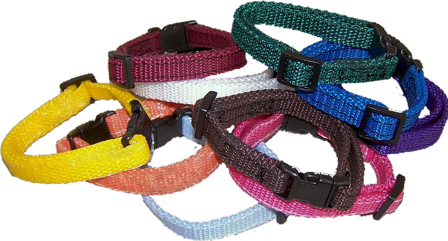 Az alomjelölő nyakörvek 1 és 2 cm-es szélességben is készülhetnek, "D" gyűrű nélküliek.